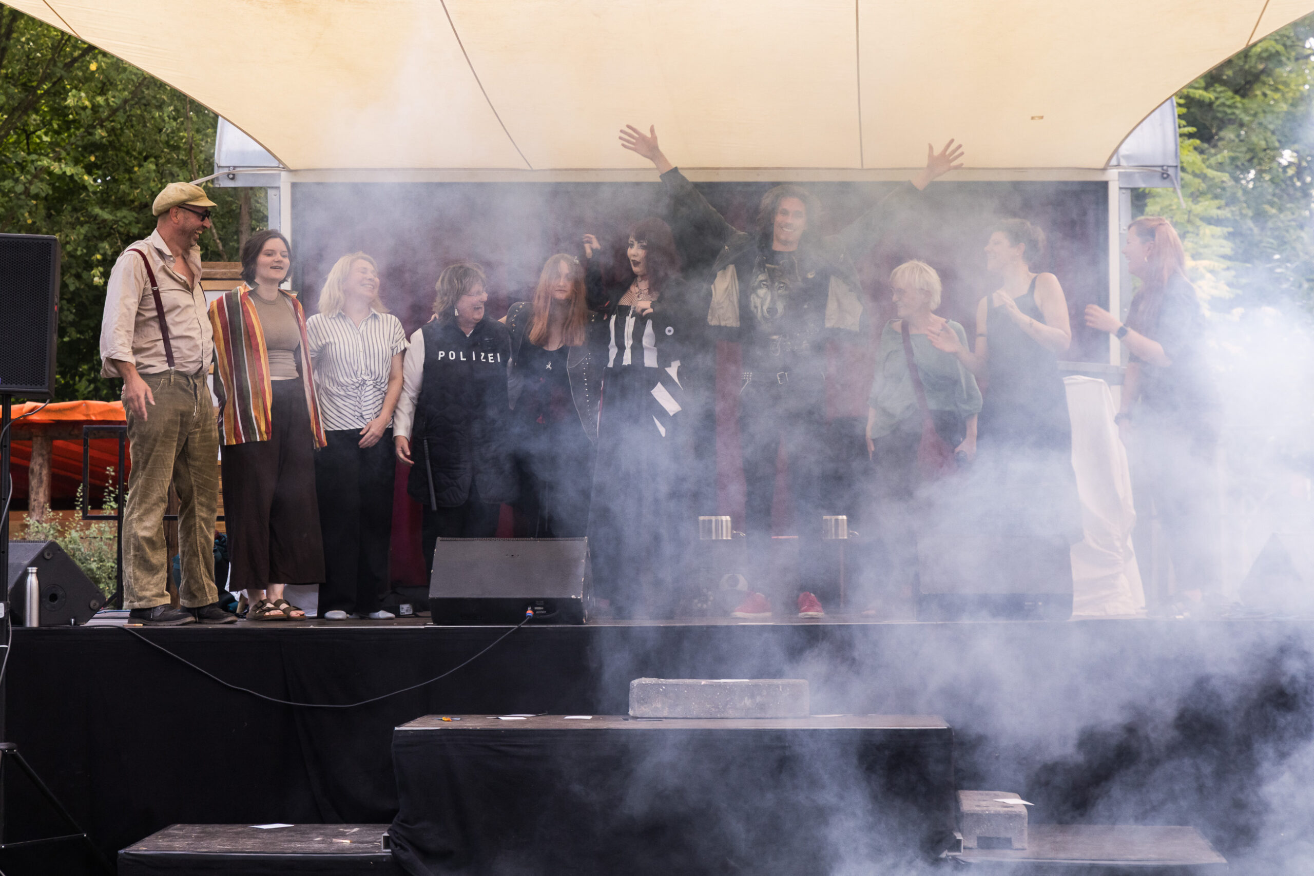 Wir erzählen Geschichten durch Multimedialität, Performance, Theater im öffentlichen Raum und interaktives Theater. Dabei ist uns wichtig, im künstlerischen Prozess von der eigenen Lebenserfahrung und Expertise jedes Einzelnen auszugehen und allen Teilnehmenden zu ermöglichen, sich einzubringen und mitzugestalten. Gemeinsam erlernen wir im Prozess Schauspielgrundlagen und -techniken und durch Kreativtechniken werden die Teilnehmenden befähigt, eigene kreative Wege zu beschreiten.